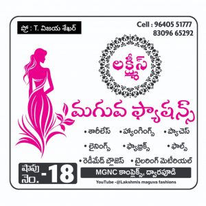 The Best Women Cloth Store in the Town – DWARAPUDI, with an inhouse Designers and Tailors to fit in your choicest Designs and having the highest range of Sarees, Dress Material and wide variety of Salwar Kameez, and other categories of clothing and ready made material.